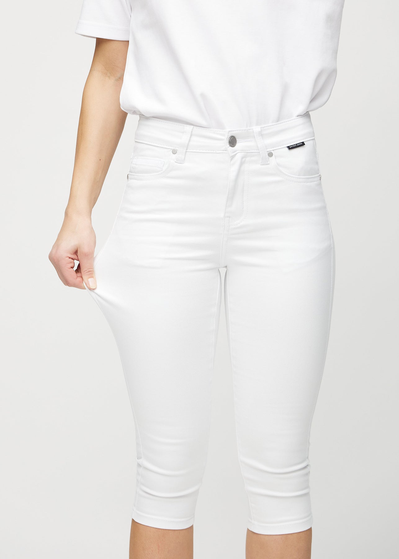The cropped length adds a modern edge, making it perfect for warmer days or for showcasing your favourite footwear. Minimal detailing keeps the look polished and refined, allowing these jeans to transition seamlessly from casual afternoons to elevated evenings.